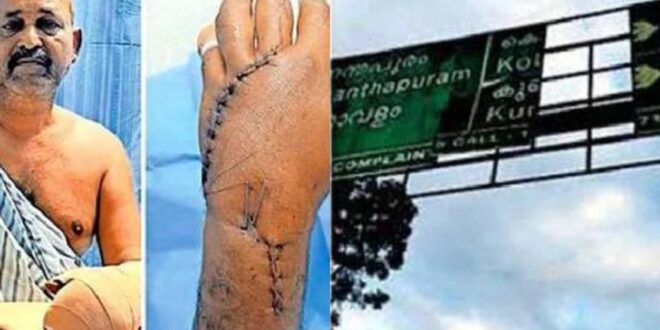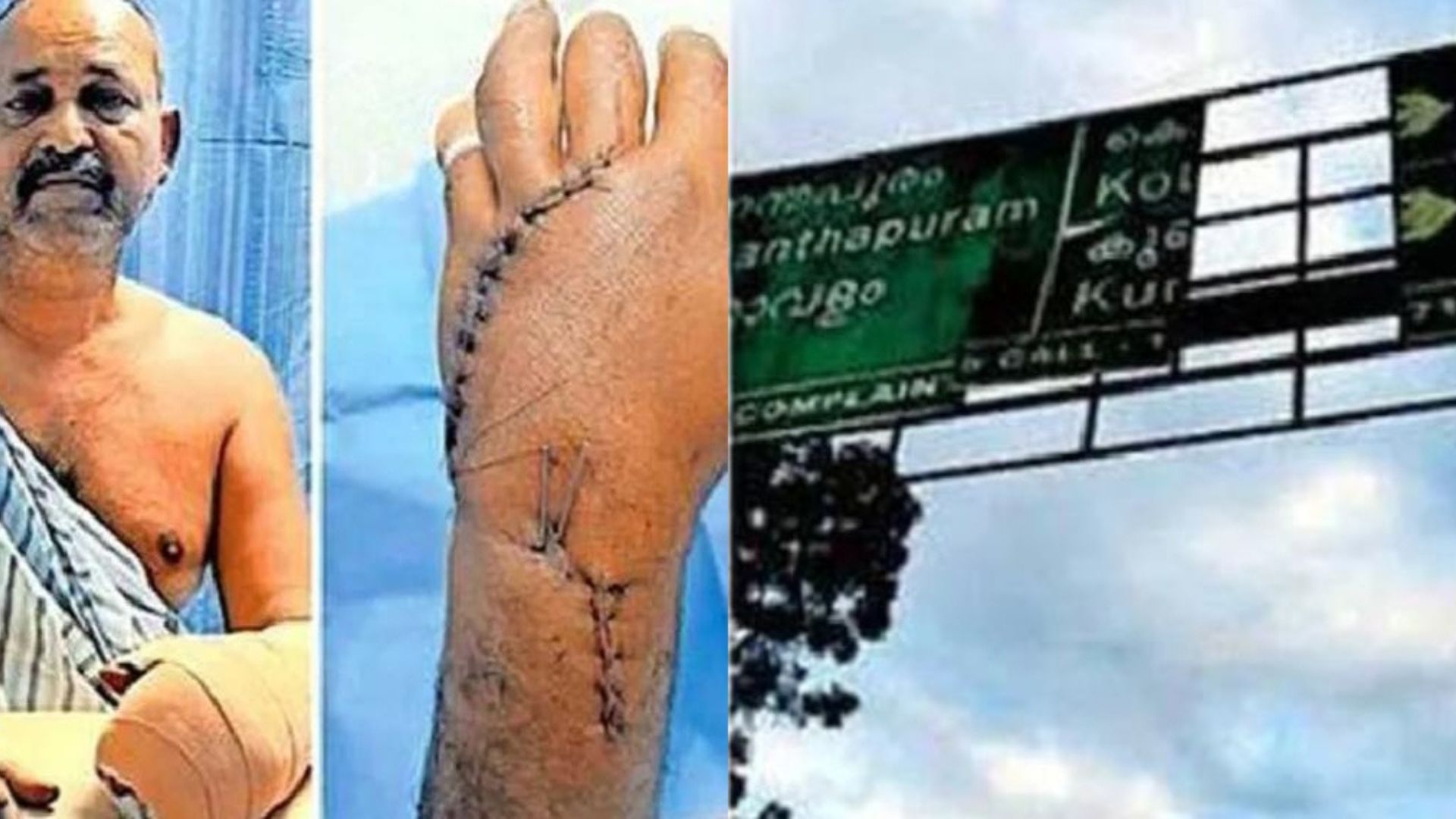 കൈപ്പത്തിക്കും വിരലുകള്ക്കും ഗുരുതരമായി പരിക്കേറ്റ മുരളീധരന് പിള്ളയെ തിരുവനന്തപുരത്തെ സൂപ്പര് സ്പെഷ്യല്റ്റി ആശുപത്രിയില് പ്രവേശിപ്പിച്ചു. കെഎസ്എഫ്ഇയുടെ കലക്ഷന് ഏജന്റായ മുരളീധരന് പിള്ള ജോലി കഴിഞ്ഞു മടങ്ങി വരുമ്പോൾ കൂറ്റന് തൂണുകളില് സ്ഥാപിച്ചിരുന്ന ലോഹപാളി അടര്ന്നു ശരീരത്തില് വീഴുകയായിരുന്നു. സ്കൂട്ടര് നിയന്ത്രണം വിട്ട് മറിയുകയും ചെയ്തു.