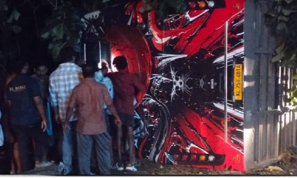 കോട്ടയത്ത് കുറവിലങ്ങാട് ടൂറിസ്റ്റ് ബസ് മറിഞ്ഞ് ഒരു മരണം;45 പേർ സ്വകാര്യ ആശുപത്രിയിൽ ചികിത്സ തേടി