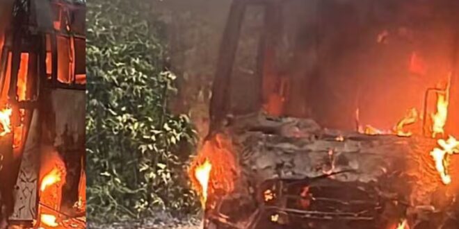 കണ്ണൂരിലേക്ക് വന്ന സ്വകാര്യ ബസിനു തീപിടിച്ചു; ജീവനക്കാർ ഓടി രക്ഷപ്പെട്ടു
